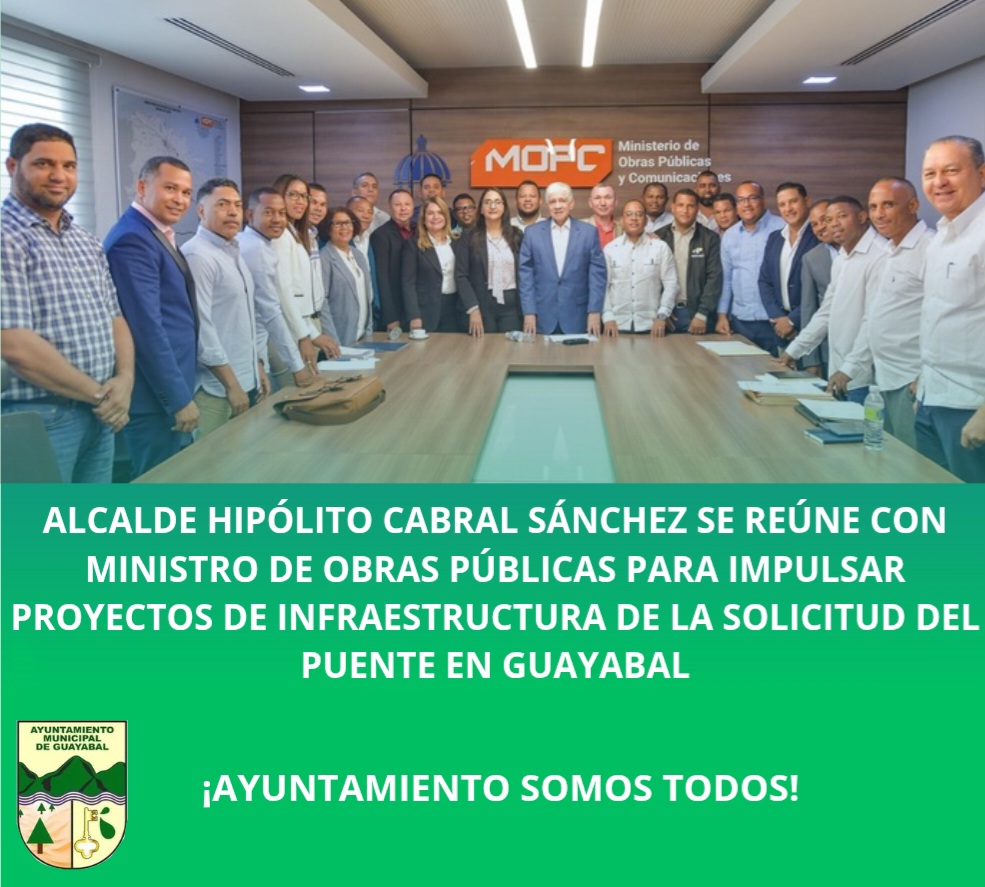 El alcalde Hipólito Cabral Sánchez se reunió hoy con Eduardo Estrella, Ministro de Obras Públicas, para discutir proyectos clave que mejorarán la infraestructura de Guayabal y sus comunidades cercanas.