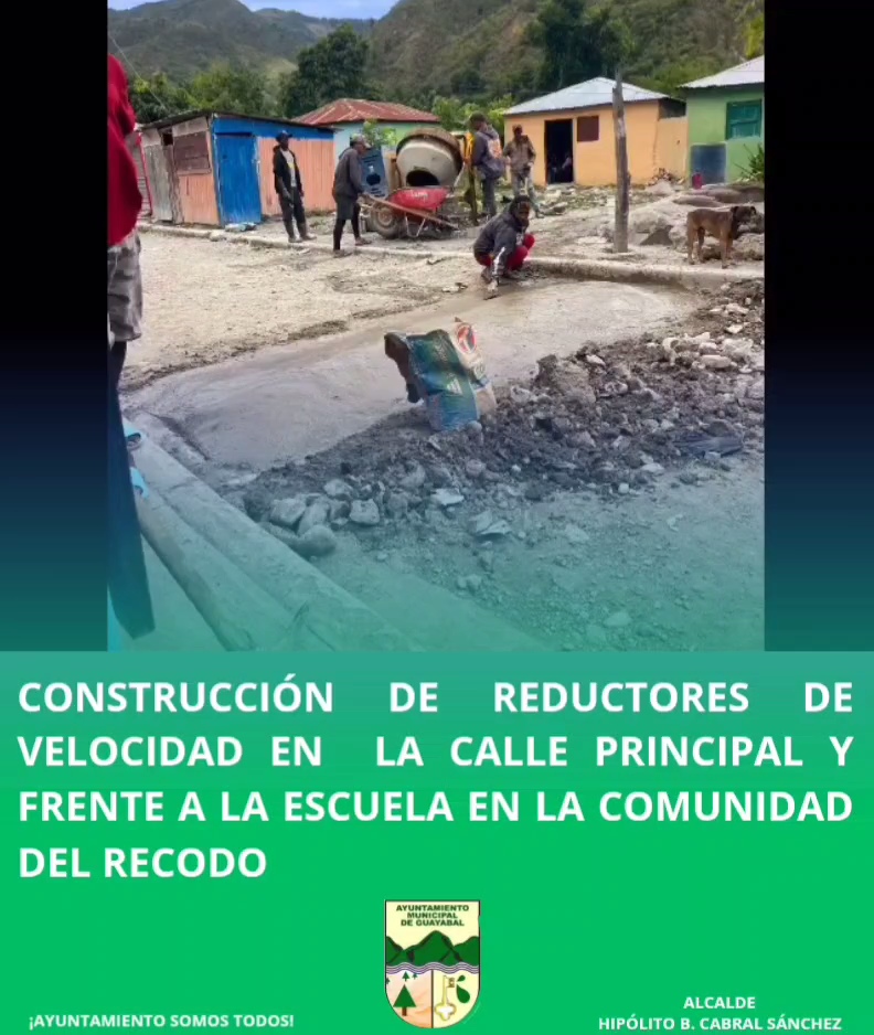 Construcción de Reductores de velocidad en la calle principal y frente a la escuela en la comunidad del Recodo
