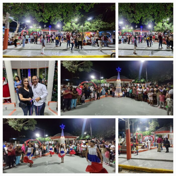 Entregamos remozado el Parque Municipal, 800 metros cuadrado de aceras y contenes, una cañada a la entrada principal a nuestro pueblo; badenes y muros para mejorar la movilidad peatonal y el tránsito de vehículos en la calle Duarte, en donde también cuatro nuevas lámparas iluminarán sectores alrededor de esta vía.